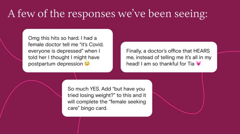 We started by asking you (our members) that exact question. And then we listened to your stories. The result: this week, Tia launched its first major advertising campaign entitled Finally, Healthcare That Hears You. Through a series of darkly funny videos and provocative billboards, we set out to highlight the absurdity of an experience most women know all too well: being dismissed and ignored by traditional healthcare.
