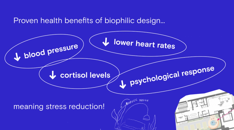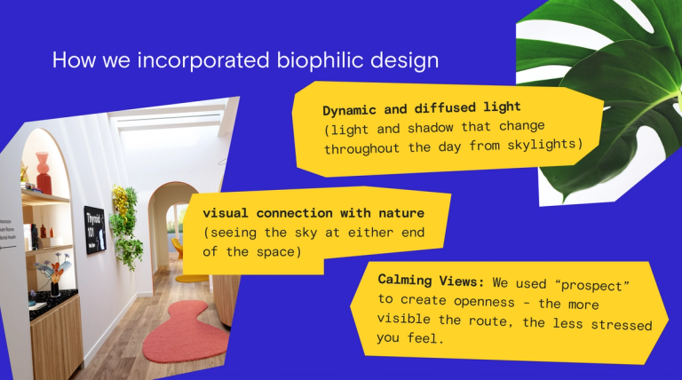 One thing, we’d love to learn a little more about is biophilic design and how you worked those principles into our space?