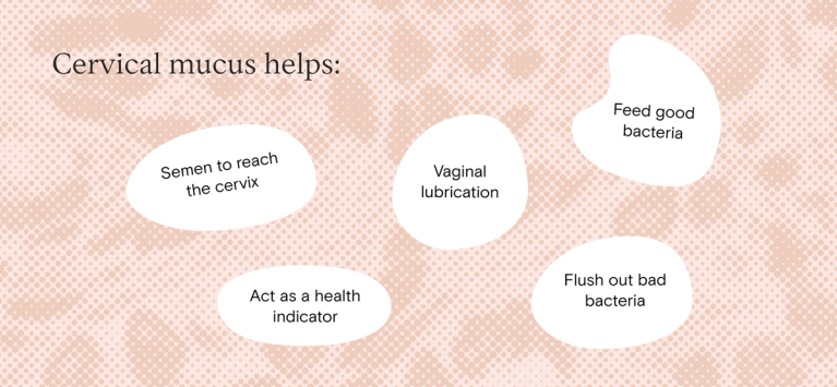In addition to acting as an indicator of health, cervical mucus also helps to aid fertilization (it literally helps semen get to the cervix!), flush out bad bacteria that can destabilize the vaginal ecosystem, and promotes and feeds good bacteria that the vagina relies upon to flourish and stay healthy. Cervical mucus also promotes vaginal lubrication, which is helpful for sex and pleasure!