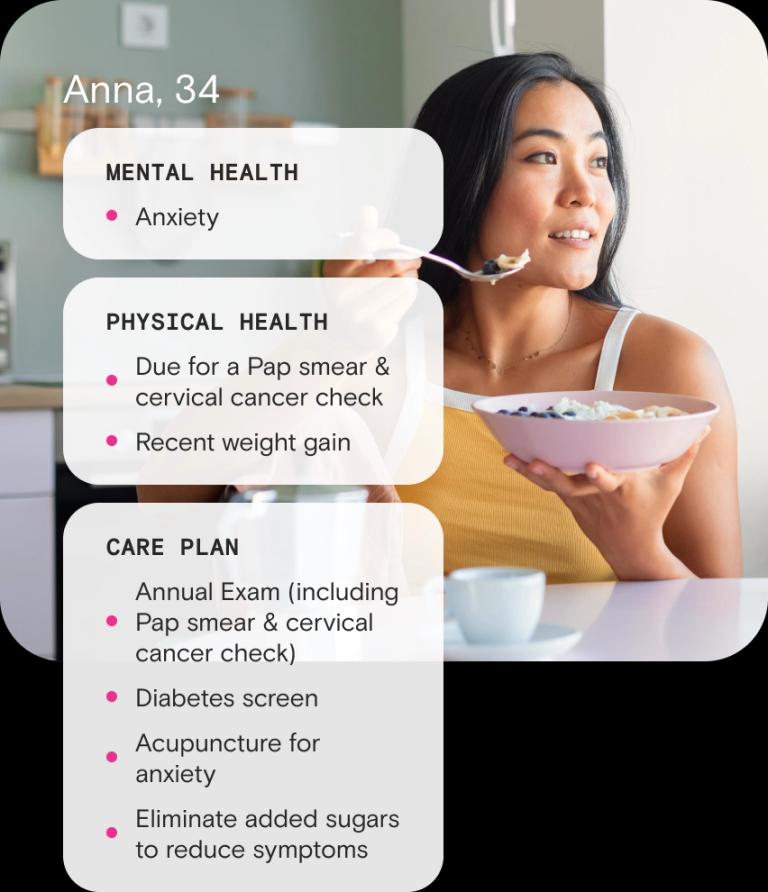 Every provider you see at Tia works together from a single health record and shared Care Plan, so your care stays connected, not fragmented.